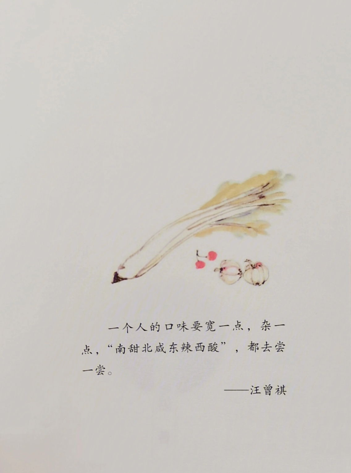 这段时间,一口气读完了汪曾祺的《人间草木》《人间有味》等美食散文集,说是一边流着口水一边读完也不夸张。昆明汽锅鸡、高邮咸鸭蛋、云南鸡枞菌……汪曾祺书中关于美食的介绍,不只是糅合着他关于生活的思考,还具备浓厚的地域文化,让人在“品味”各地风味美食的同时,领略到各地独特的风土人情。