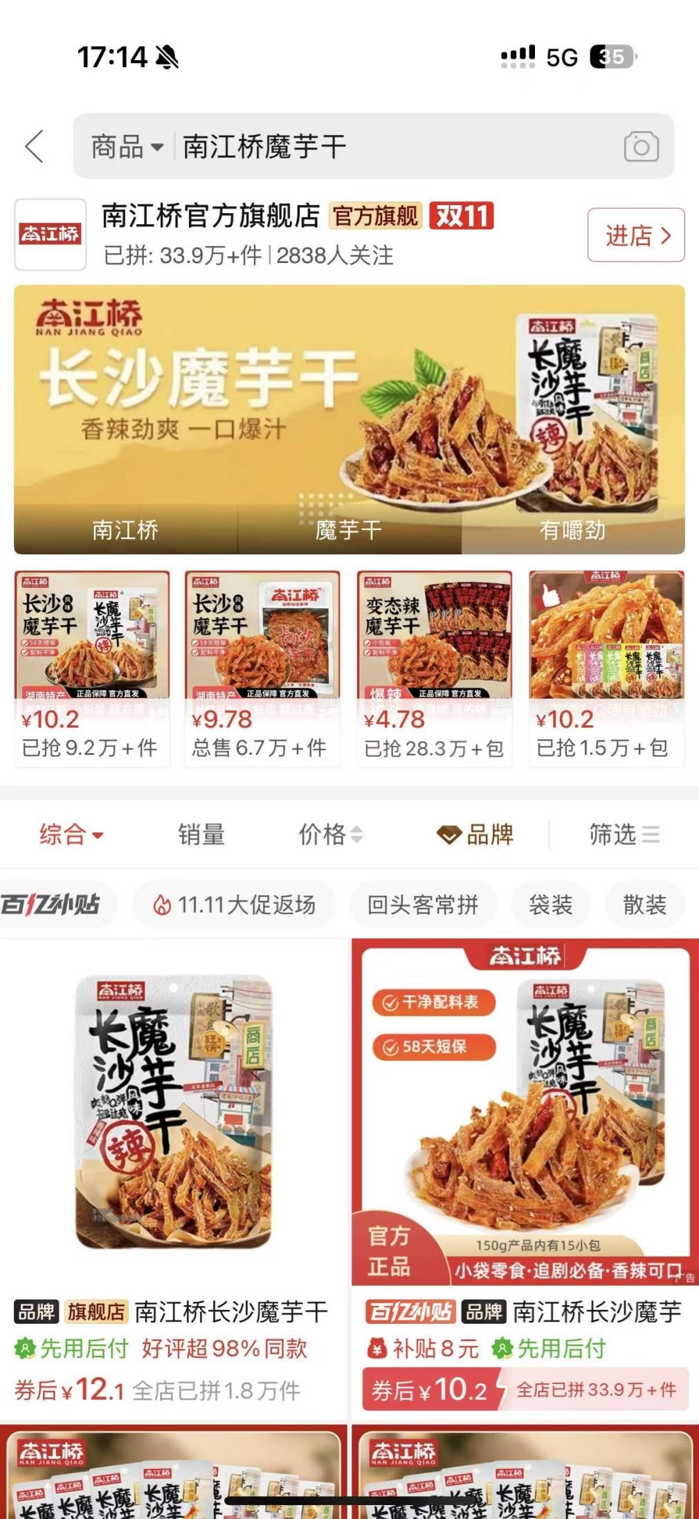 来自湖南的麻辣零食新势力南江桥,就验证了拼多多引爆风味小吃大单品的逻辑。南江桥2023年前后才成立,其从地摊小吃汲取灵感,主攻魔芋干这一单品,只用一年多时间就实现了年销破亿,其中线上约占一半。在拼多多上,南江桥只有8个SKU,但一年就做到了一千两百万销售额(净)。南江桥主攻年轻女性,其利用拼多多“千人千面”的商品推荐机制,针对性地将商品推送给带有“爱吃零食”“注重健康”“一二线城市”等标签的用户群,在高效率的推荐机制下快速起量。