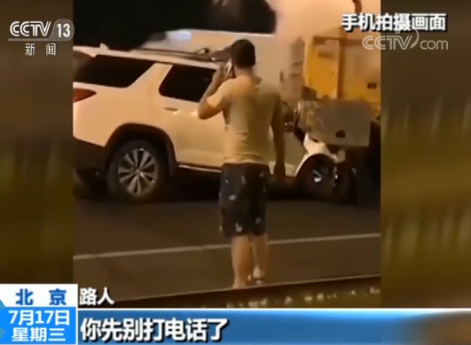 中国政法大学传播法研究中心副主任 朱巍:我们只是看到了部分视频,没看到全部,但是从现在部分视频看,司机是一直在打电话的,他可完全拦住身边的人一起来救助,它并非是撞倒了后部或者中后部,中后部是有油箱的,离着火、爆炸的危险还是比较小的,应该是有足够的施救时间的。”